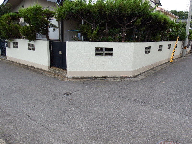 リフォーム後は塀の下部にベージュをあしらいました。 -